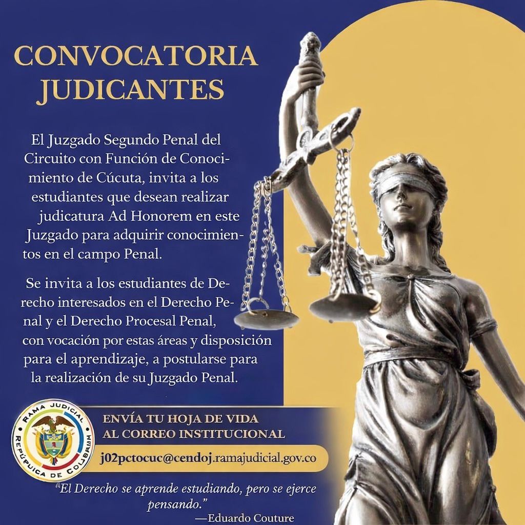 | Juzgado 06 Penal Municipal con Función de Conocimiento de Cucuta | 11-08-2025 | NA | Oficial Mayor Municipal | VER |