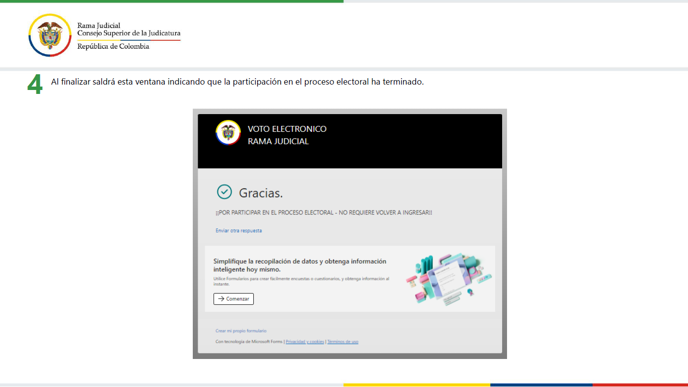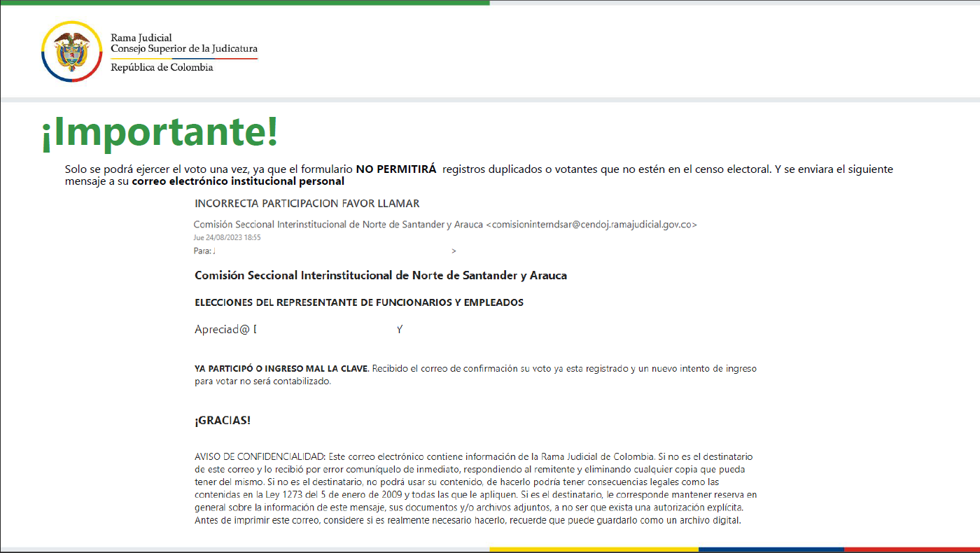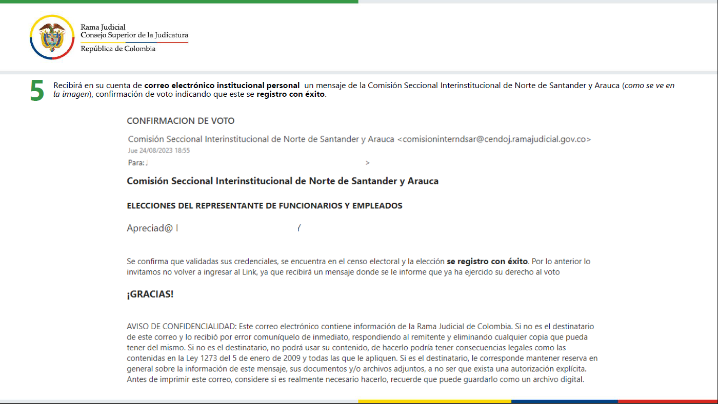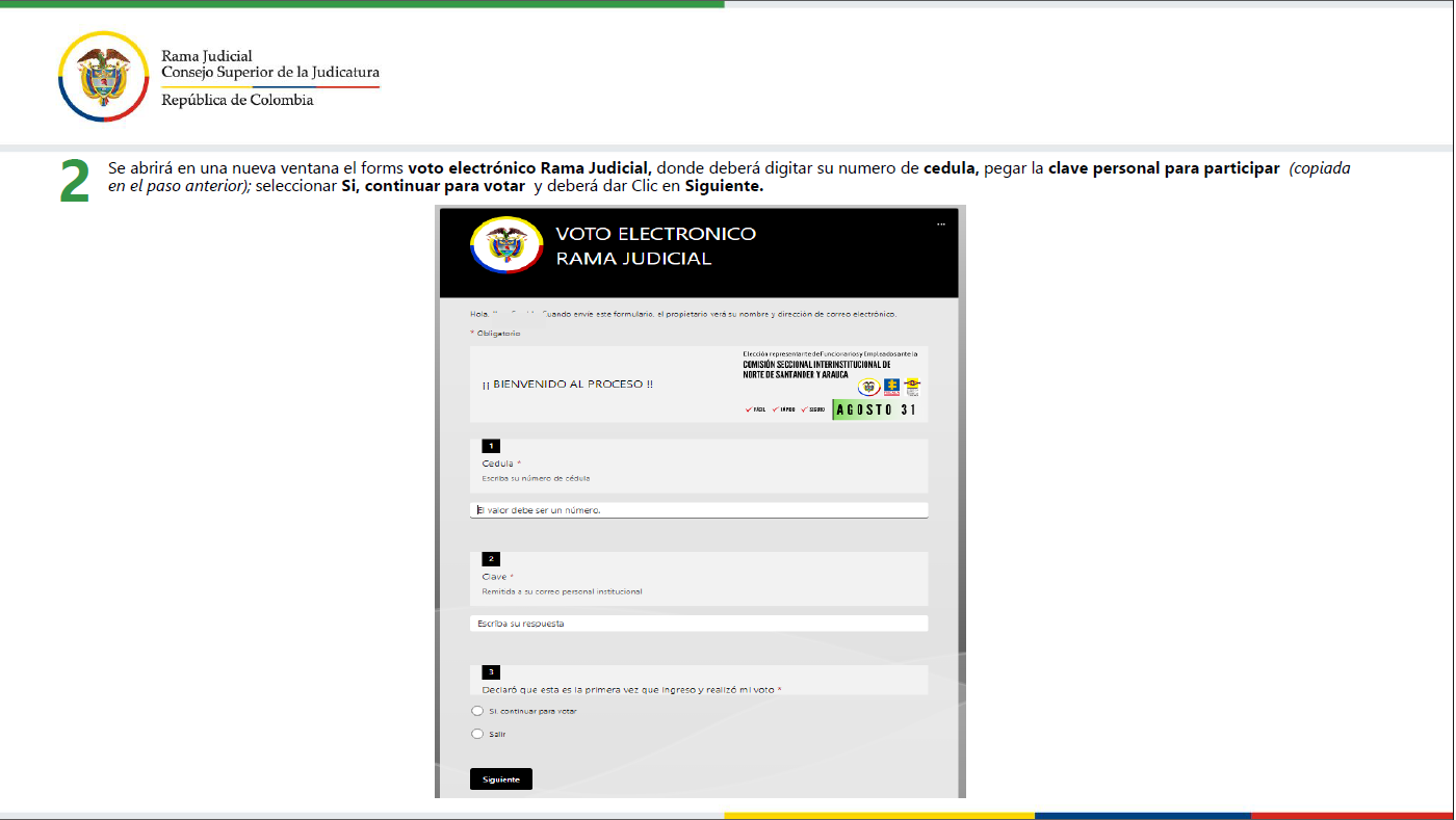 Comisión Interinstitucional, Interés generalInstructivo de votación Comisión Seccional Interinstitucional de Norte de Santander y Arauca Posted on 29 agosto, 202329 agosto, 2023 by Tribunal Superior Distrito Judicial de Cúcuta Presentación de Propuestas de los Candidatos a Representante de los Funcionarios y Empleados de la Rama Judicial ante la Comisión Interinstitucional Acuerdo PCSJA23-12089 “Por el cual se suspenden términos judiciales en el territorio nacional”