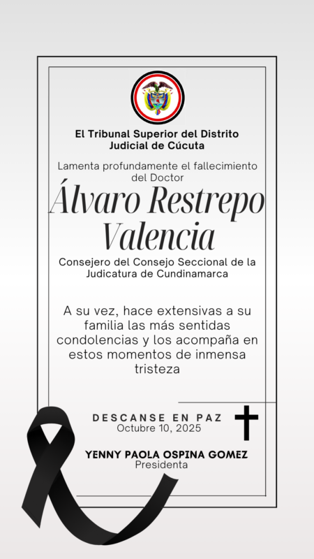 Interés general, Tribunal SuperiorNOTA DE CONDOLENCIA Posted on 10 octubre, 202510 octubre, 2025 by Tribunal Superior Distrito Judicial de Cúcuta NOTA DE CONDOLENCIA